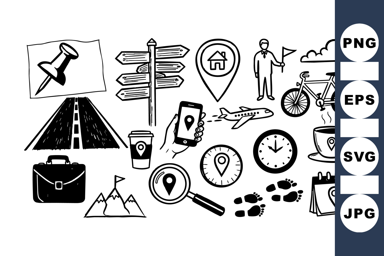 Travel Icon Set Hand Drawn Icons Location Pin Graphics Navigation Vector Pack Digital Map Icons Road Trip Elements Map Symbol Bundle Travel Navigation Icons Travel Vector Collection Travel Design Set