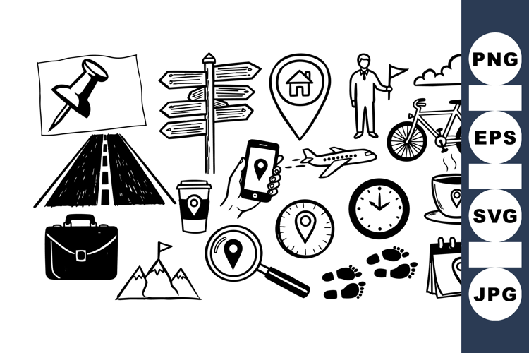 Similar Design Products to Hand Drawn Travel Icon Vector Set for Navigation Design