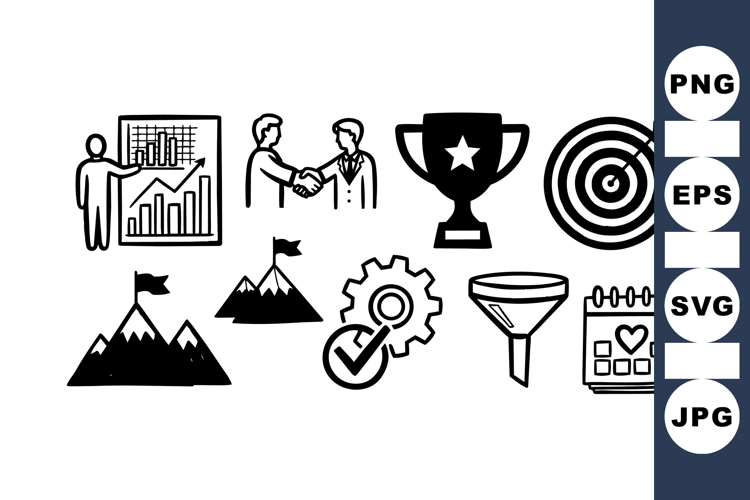 Achievement Icon Set Business Success Icons Goal Setting Vectors Business Planning Icons Corporate Milestone Graphics Teamwork And Handshake Strategy And Growth Goal Tracker Symbols Performance Chart Icons Motivation And Achievement