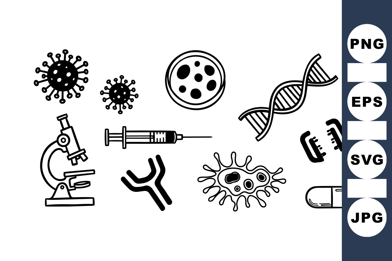 Dna Strand Illustration Healthcare Vector Pack Medical Research Graphics Laboratory Equipment Set Microbiology Science Icons Virus And Bacteria Clipart Vaccination Syringe Design Immune System Symbols Microscope Icon Collection Pathogen Disease Graphics