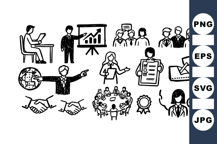 Hand Drawn Business Meeting Icon Set Bundle