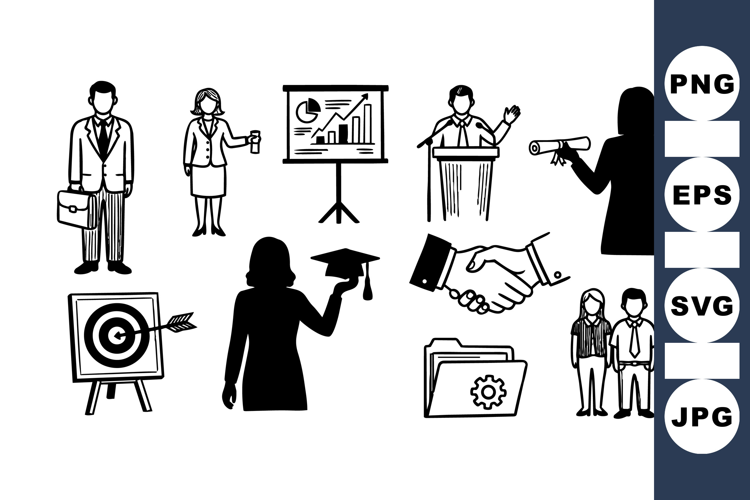 Business Meeting Icons Project Management Icons Office Vector Set Professional Team Graphics Corporate Presentation Icons Business Handshake Illustration Graduate Certificate Vector Business Goal Symbols Office Staff Silhouettes Formal Business People