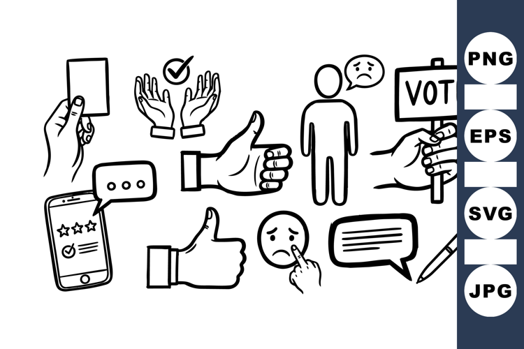 Hand Drawn Icons Social Media Icons Voting Icon Set Election Clipart Bundle Political Symbol Graphics Feedback Illustration Pack Customer Review Clipart Digital Voting Graphics Ballot And Pen Set Thumbs Up Thumbs Down