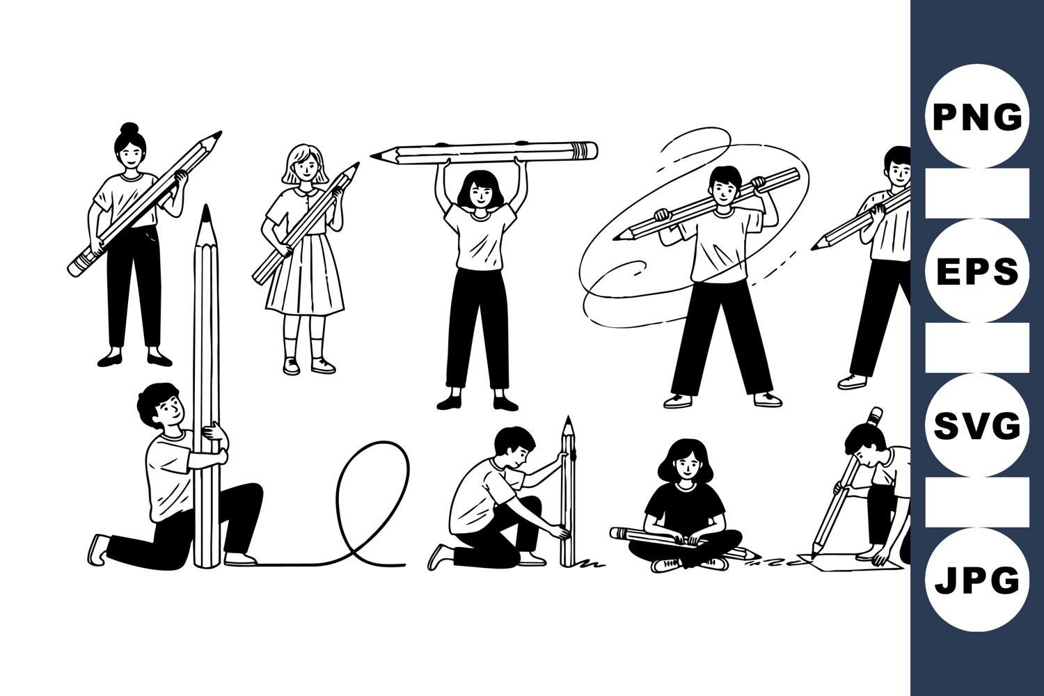 Children Holding Giant Pencil SVG Clipart Bundle example image 1
