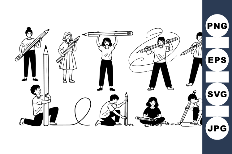Similar Design Products to Children Holding Giant Pencil SVG Clipart Bundle