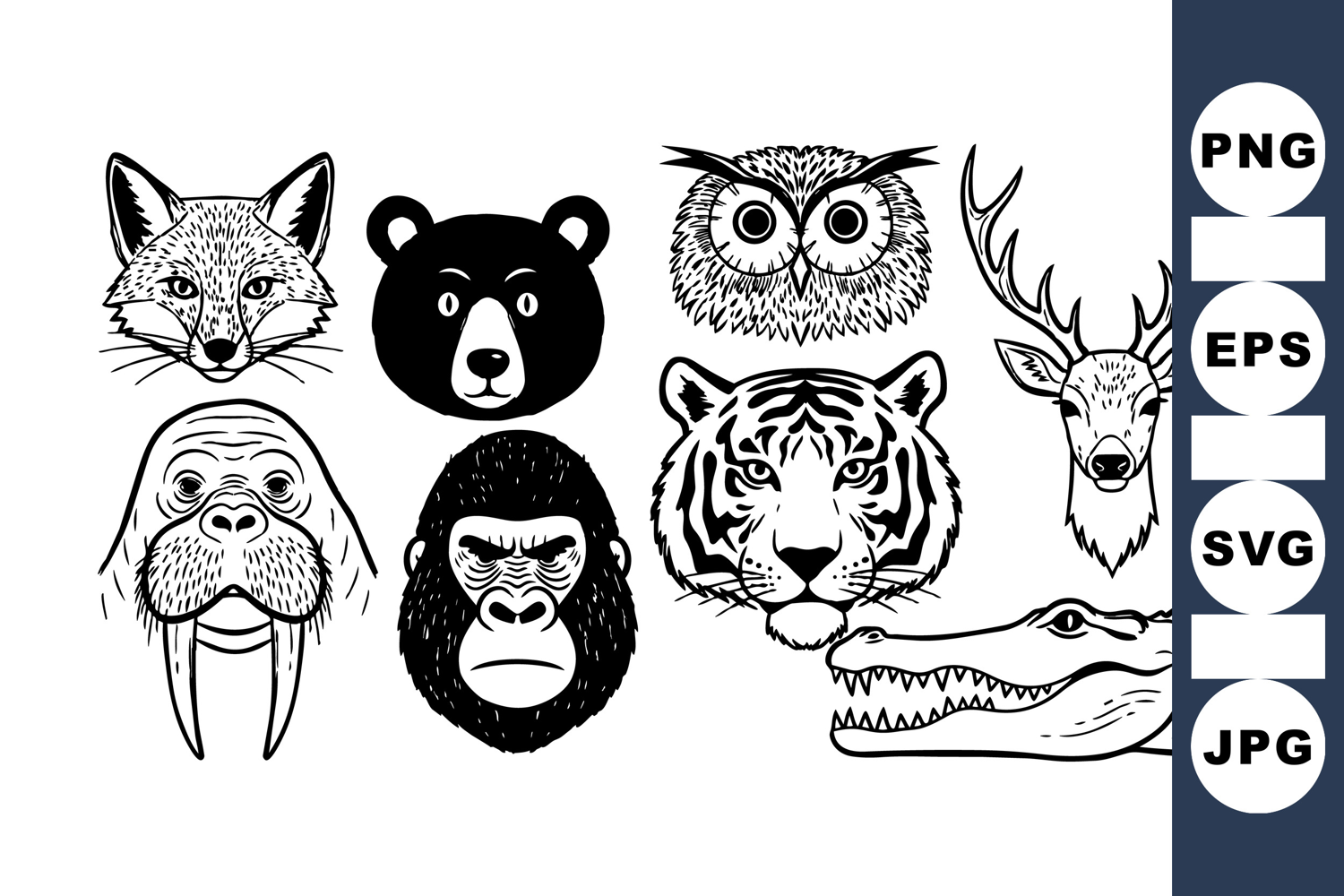 Wild Animal Head Vector Clipart Bundle for Crafts
