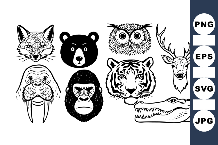 Wild Animal Head Vector Clipart Bundle for Crafts example image 1