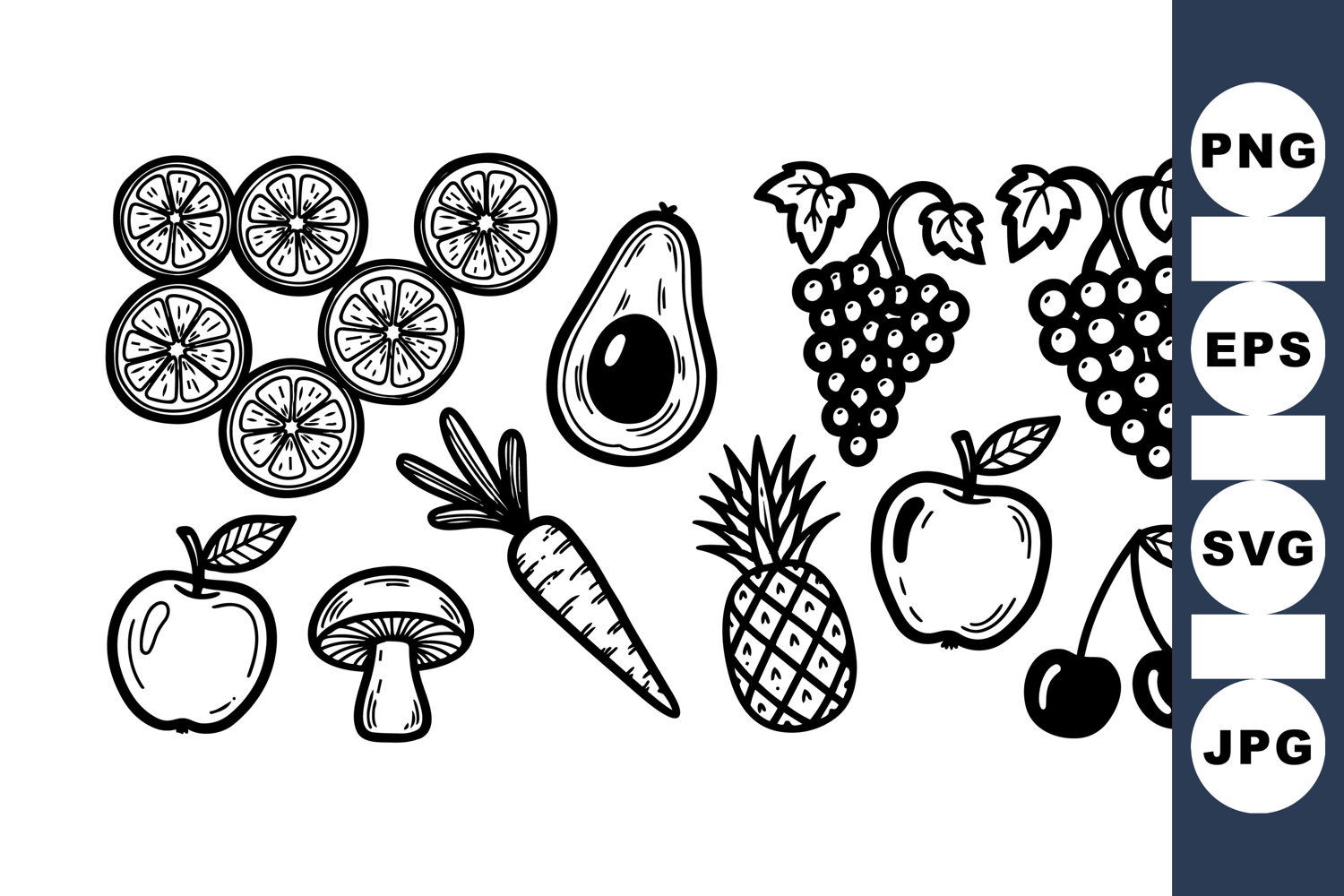 Healthy Food Clipart Hand Drawn Fruit Farmers Market Graphics Black Line Art Fresh Fruit Illustration Organic Food Bundle Vector Food Bundle Fruit Vector Clipart Fruit Svg Set Fruit Clipart Pack