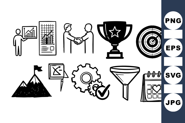 Hand Drawn Icons Business Icon Set Goal Achievement Icons Growth Chart Icons Business Meeting Icons Teamwork Icon Collection Strategy Icon Pack Office Planning Set Presentation Graphics Pack Success Symbol Bundle