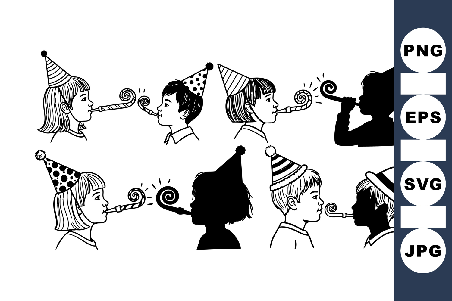 Party Horn Clipart Party Hat Illustrations Holiday Party Graphics Party Celebration Clipart Birthday Invitation Design Vintage Party Bundle Festive Vector Bundle Children Birthday Set Kids Silhouette Set Retro Kids Vector