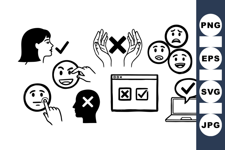 Hand Drawn Icons User Interface Icons Vector Clipart Pack Web Design Icons Feedback Icon Set Digital Feedback Elements Emotion Icon Bundle Approval Rejection Icons User Expression Graphics Interface Icon Collection