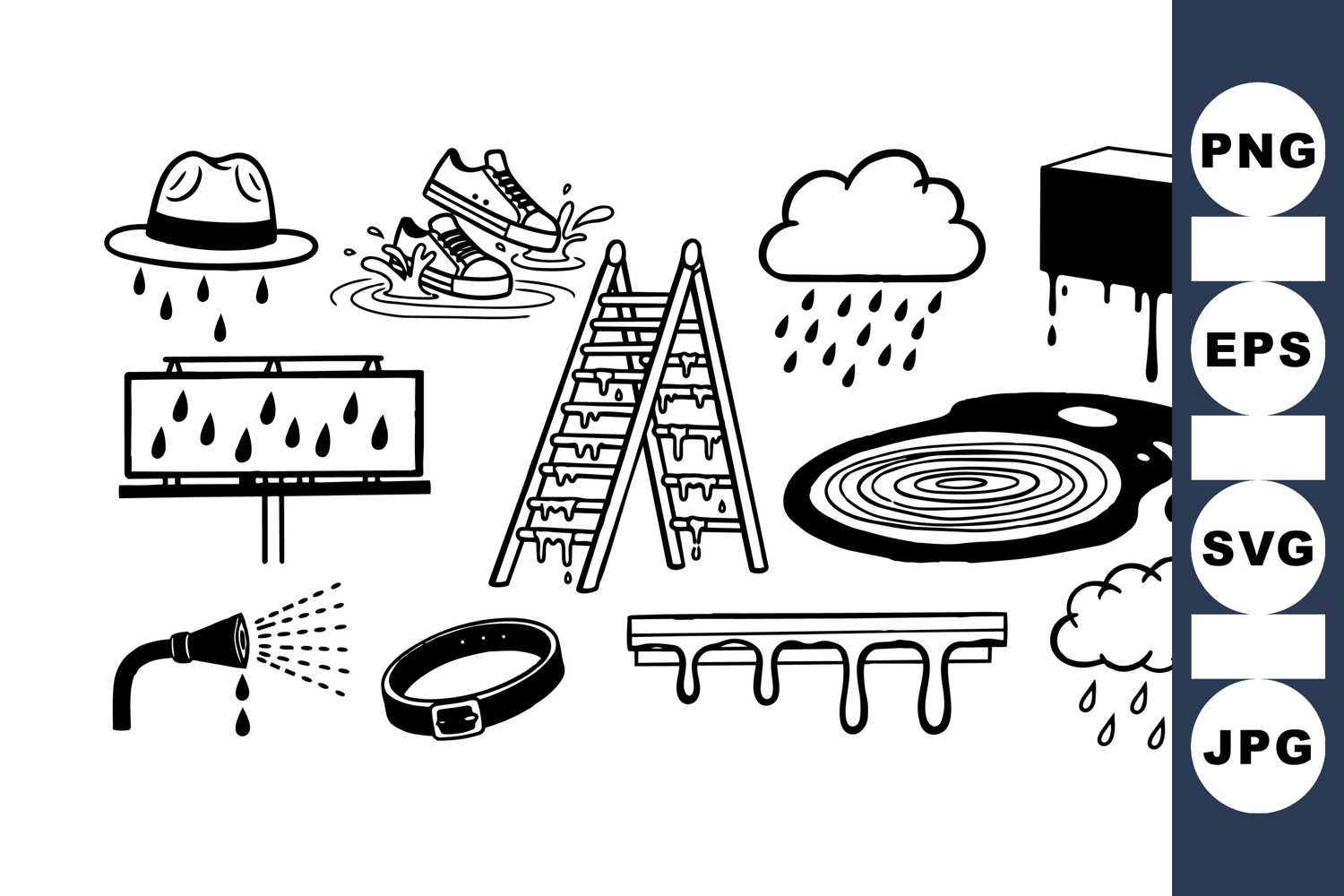 Rain Water Weather Icon Clipart Bundle Set example image 1
