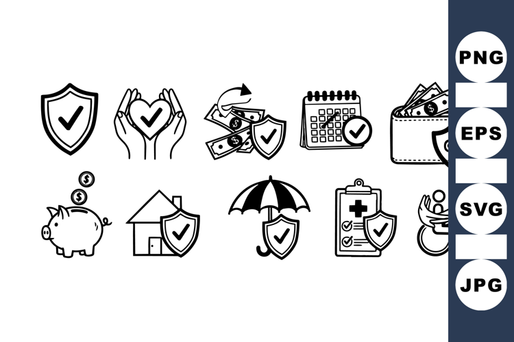 Insurance Icon Set Financial Icon Bundle Home Safety Icons Protection Symbol Pack Health Insurance Icons Money Security Symbols Calendar Checklist Icons Disability Coverage Set Wallet Shield Graphics Piggy Bank Illustration
