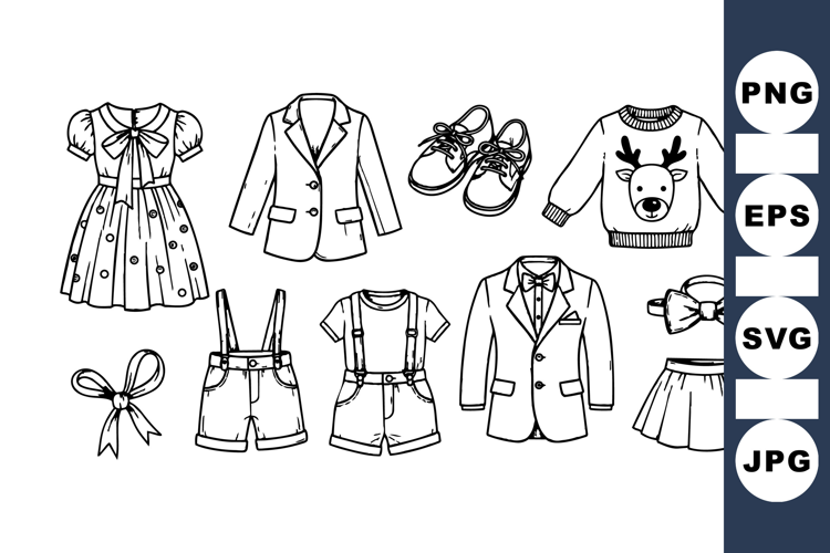 Line Art Kids Clothing Vector Clipart Bundle for Crafts