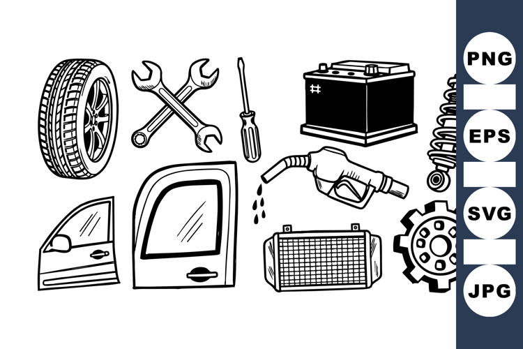 Hand Drawn Auto Auto Repair Clipart Mechanic Tool Set Car Parts Bundle Vehicle Maintenance Pack Car Service Clipart Fuel Pump Design Car Door Illustration Mechanic Gear Bundle Shock Absorber Clipart