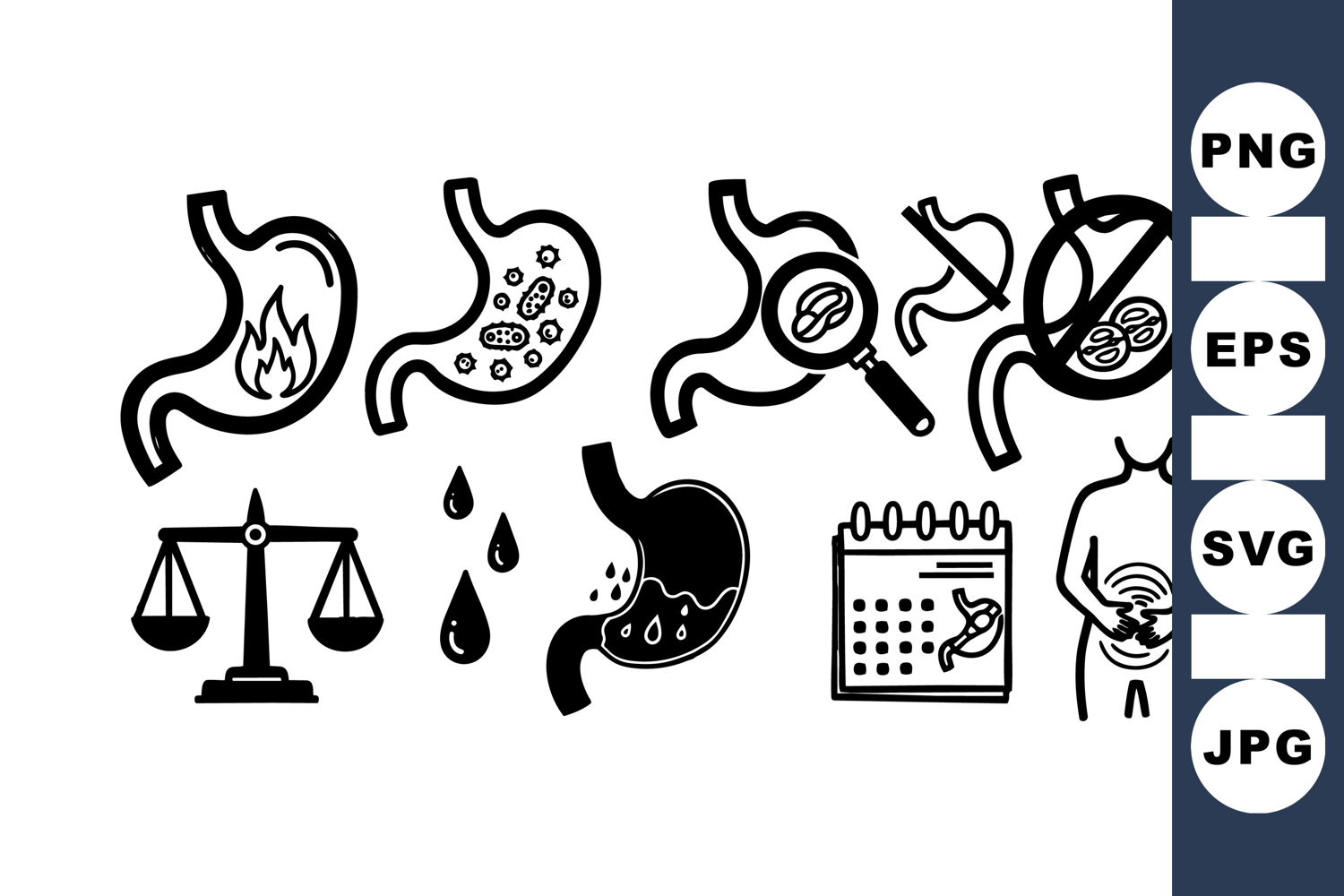 Medical Icon Set Digestive System Clipart Healthcare Icon Bundle Acid Reflux Graphic Stomach Health Vector Gastric Pain Illustration Bacterial Infection Symbol Digestive Disorder Vector Clinic Appointment Design Body Pain Silhouette