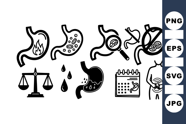 Stomach Health Medical Vector Icon Set Bundle example image 1