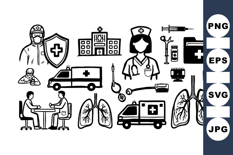 Medical Vector Bundle Healthcare Clipart Set Nurse And Doctor Icons Hospital Building Illustration Emergency Ambulance Graphics Lungs Anatomy Vectors Medical Consultation Clipart Healthcare Equipment Pack Medical Protection Icons Urgent Care Illustrations