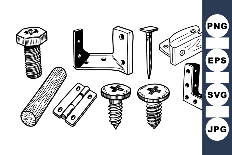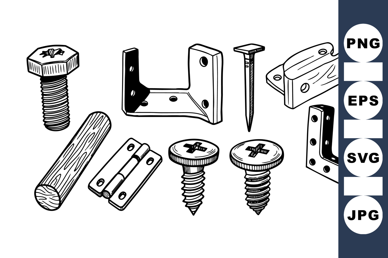 Hand Drawn Hardware Vector Clipart Bundle for Crafts