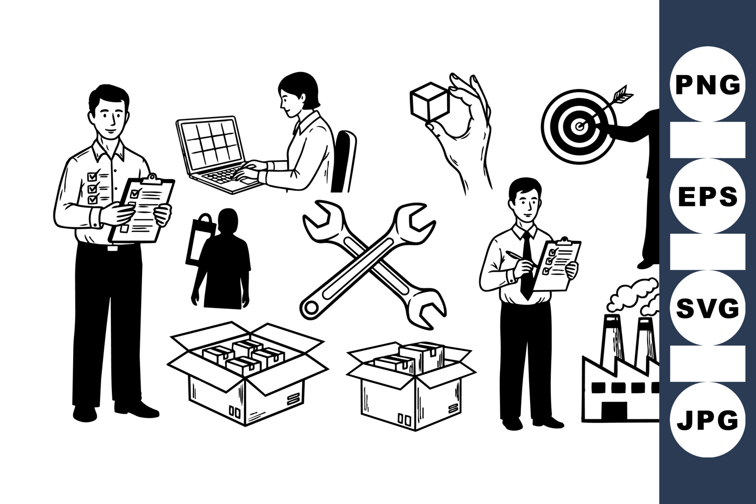 Workflow Vector Set Business Planning Set Target Goal Icons Business Process Icons Office Management Clipart Inspection Checklist Icon Factory Production Graphics Shipping Package Vector Tools And Wrench Employee Silhouette Vector