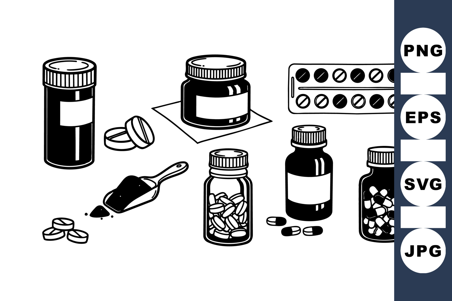 Hand Drawn Medicine Bottles And Pills Clipart Bundle