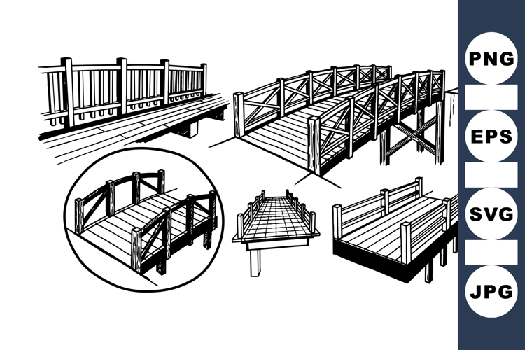 Similar Design Products to Hand Drawn Wooden Bridge SVG Clipart Set for Crafts