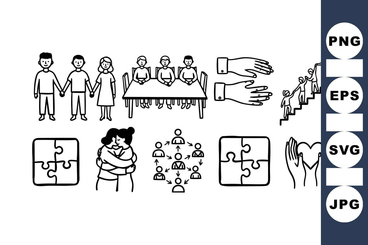 Line Art Bundle Hand Drawn People Community Support Clipart Vector Family Set Social Connection Design Helping Hands Illustration Group Teamwork Graphics Puzzle Piece Icons Friendship Hug Clipart Network Meeting Set