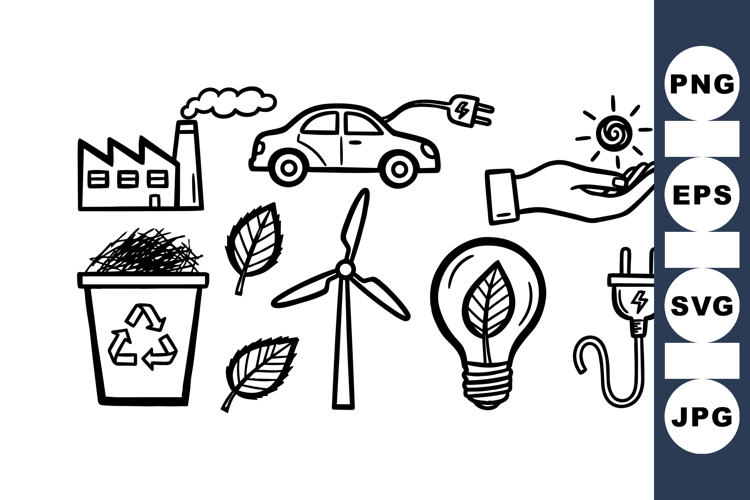 Hand Drawn Eco Energy Icon Set For Sustainable Design example image 1