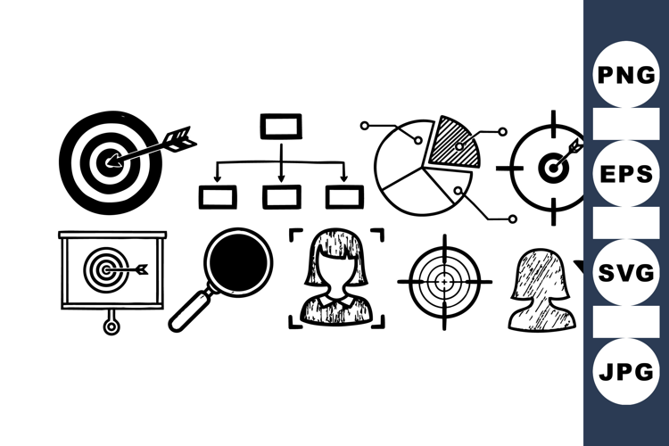 Hand Drawn Icons Business Presentation Graphics Marketing Icon Set Vector Icon Collection Business Vector Pack Business Strategy Set Customer Focus Design Target Market Icons Marketing Tools Bundle Svg Marketing Icons