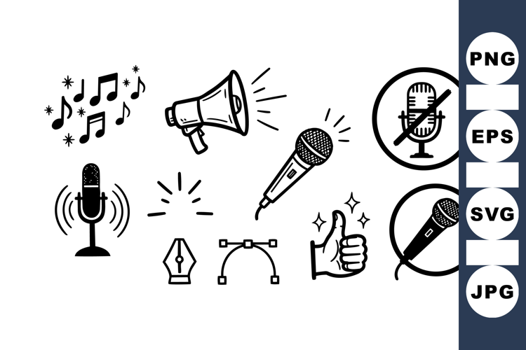 Hand Drawn Icons Microphone Clipart Music Note Vector Digital Design Elements Broadcast Icon Pack Audio Icon Set Sound Effect Graphics Voice Recording Icons Muted Microphone Symbol Podcast Logo Graphics