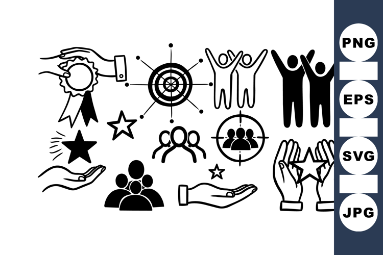 Award Ribbon Clipart Goal Achievement Icons Leadership Icon Pack Teamwork Icon Set Business Success Symbols Group Collaboration Set Team Celebration Graphics Target Audience Icons Hands Support Symbols People Teamwork Clipart