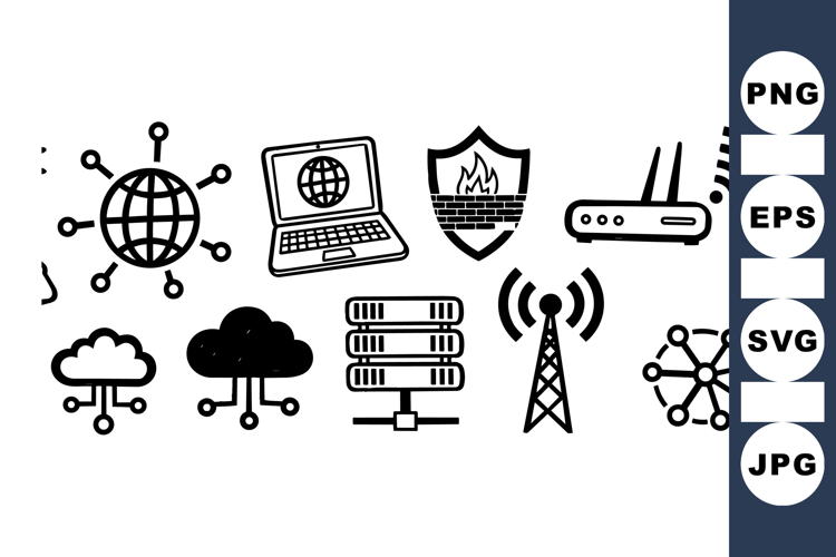 Technology Icon Pack Cloud Storage Graphics Network Icon Set Digital Network Design Wifi Signal Icons Firewall Security Icons Router Device Illustrations Internet Connection Bundle Server Rack Graphics Wireless Communication Icons