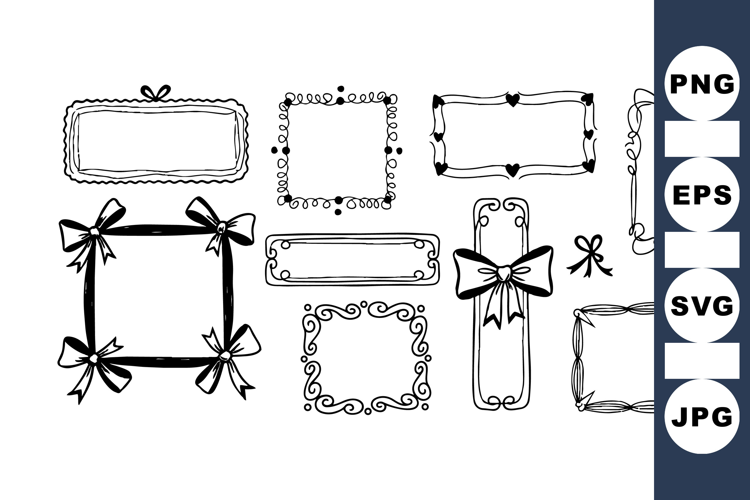 Hand Drawn Frame Svg Frame Bundle Black And White Frames Decorative Border Clipart Cute Ribbon Clipart Ribbon Bow Design Vector Sketch Frames Ornate Doodle Borders Square Rectangle Frame Craft Border Collection