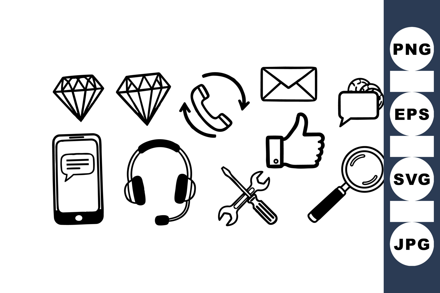 Hand Drawn Icons Social Media Graphics Mobile Phone Icons Communication Icon Set Contact Icon Bundle Customer Service Graphics Message Bubble Vectors Support Tools Collection Email Icon Pack Technical Help Icons