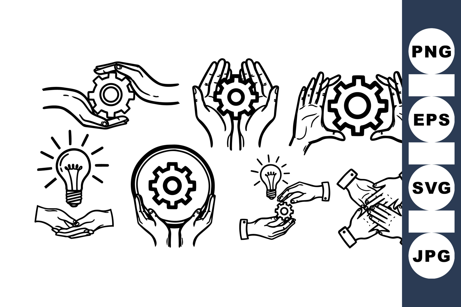 Hand Holding Gear Icons Vector Set for Business Use example image 1