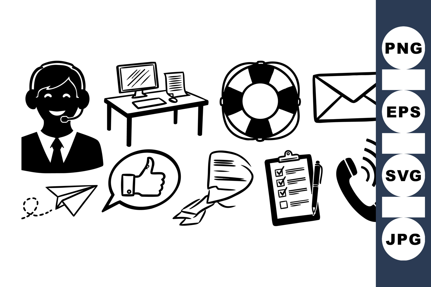 Customer Support Icons Business Communication Set Call Center Graphics Email And Phone Icons Task Checklist Graphics Office Workspace Icons Support Agent Illustrations Customer Service Clipart Client Feedback Icons Professional Help Icons