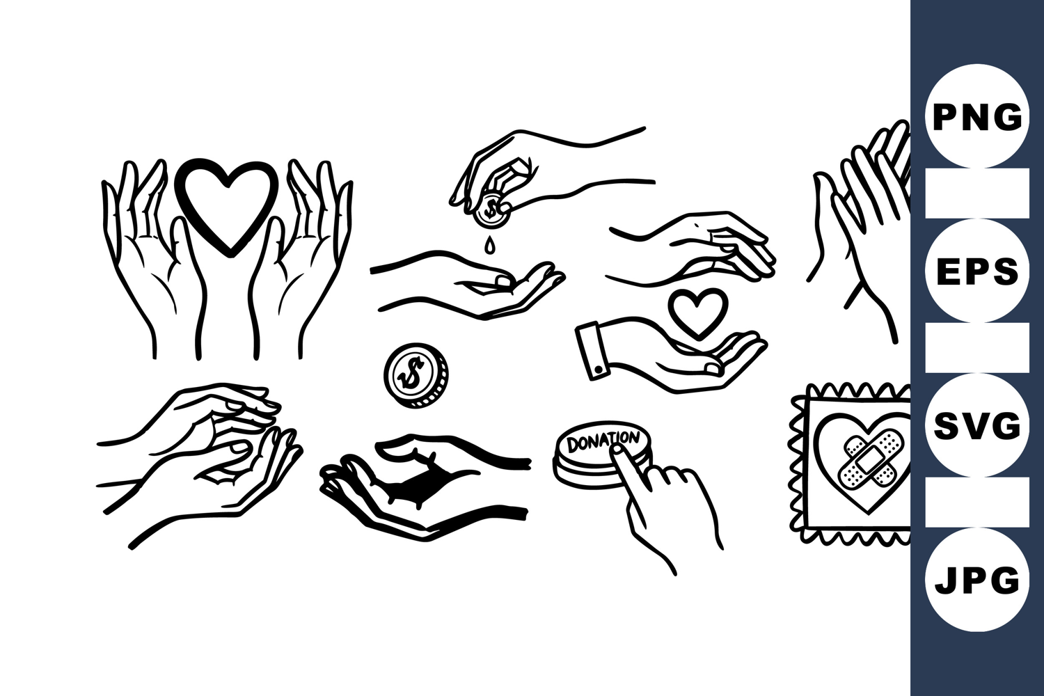 Hand Drawn Charity Hands Vector Clipart Set example image 1
