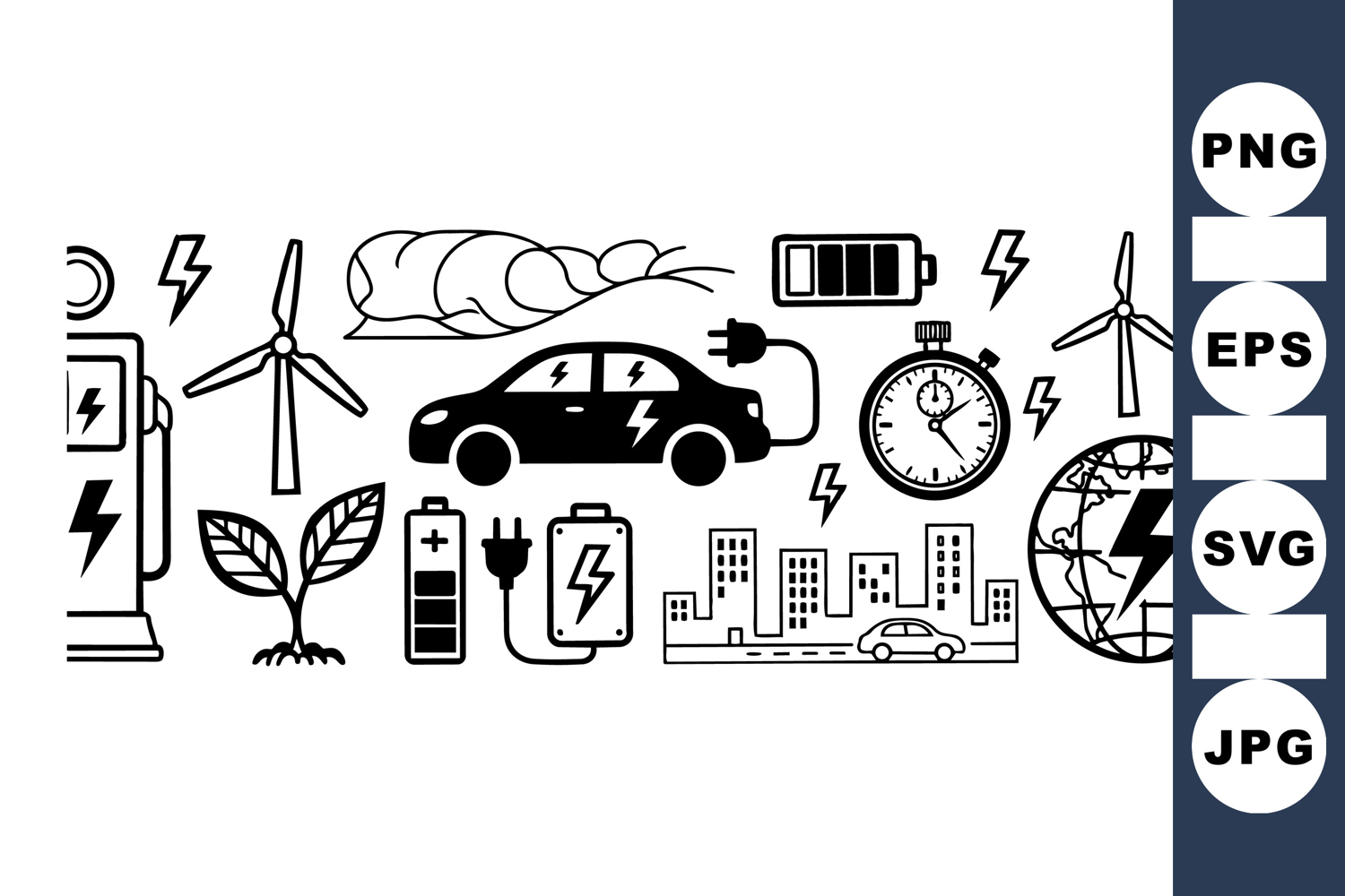 Electric Vehicle And Renewable Energy Icon Set Bundle example image 1