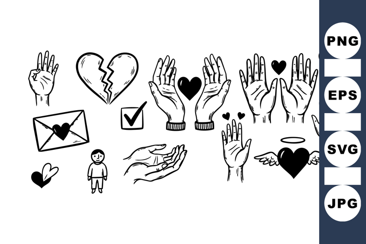 Love Icon Set Valentine Svg Bundle Broken Heart Clipart Hand Gesture Icons Open Palm Illustration Minimal Line Drawings Vector Hand Symbols Romantic Design Pack Angel Heart Icon Digital Love Graphics