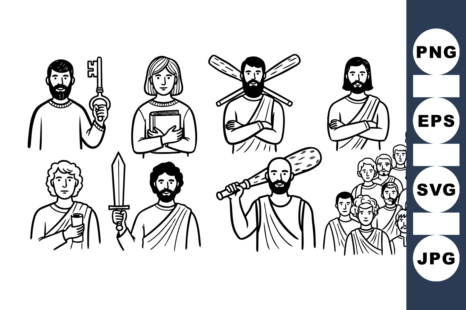 Black And White Vector Vector Character Set Editable Vector Clipart Ancient Greek Characters Historical Figure Clipart Classic Greek Illustration Digital Educational Graphic Greek Mythology Design Roman Era Characters Classic History Clipart