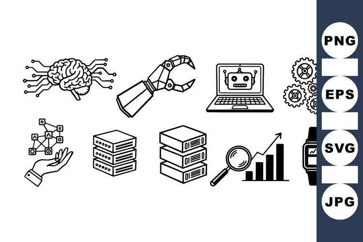 Artificial Intelligence Illustration Digital Data Graphics Robotic Arm Clipart Technology Svg Icons Machine Learning Icons Automation Gear Set Wearable Device Design Computer Robot Graphic Network Analytics Svg Server Database Clipart