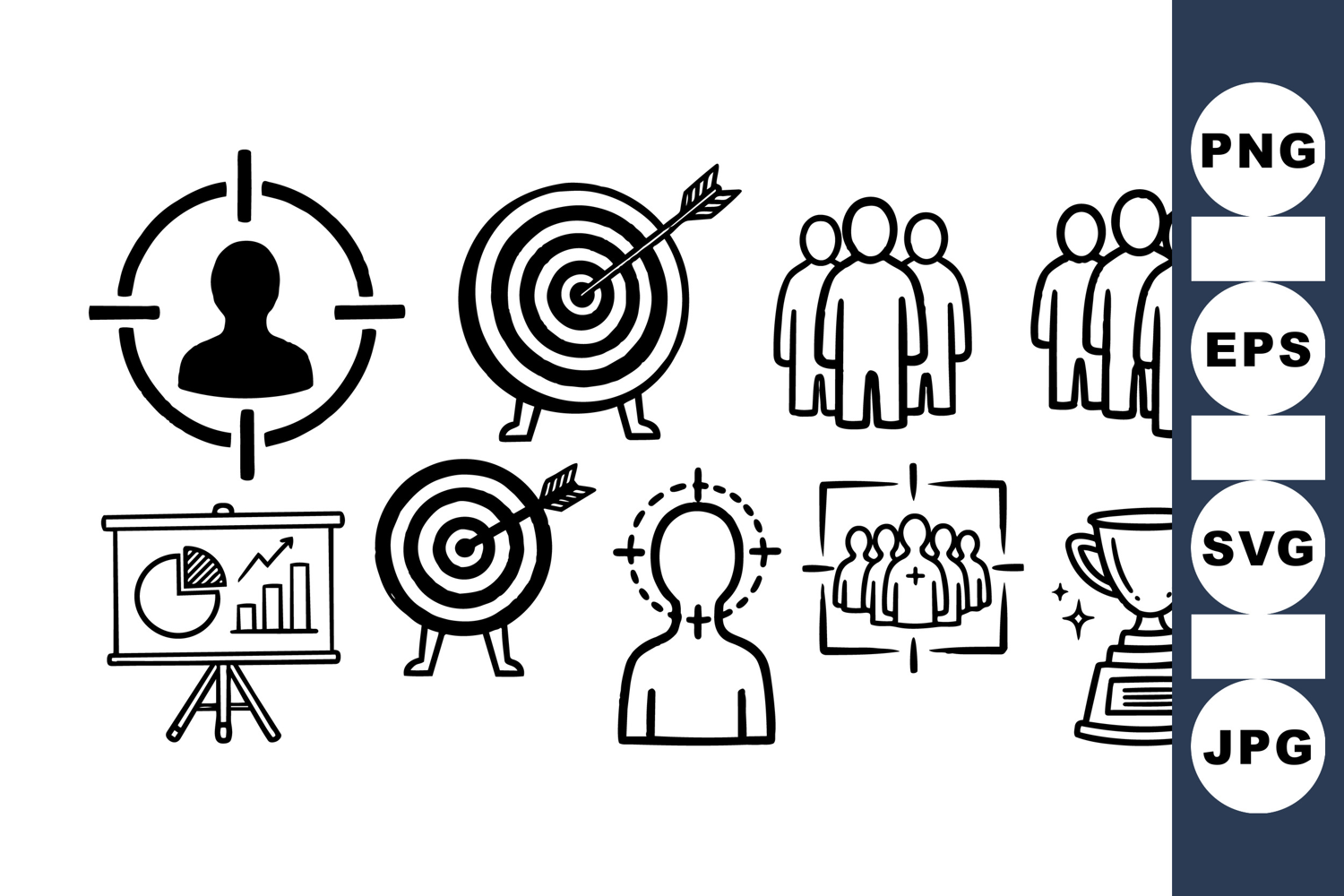Award Trophy Icons Strategic Planning Set Business Goal Illustrations Business Success Graphics Target Marketing Icons Teamwork Group Icons Audience Focus Clipart Growth Strategy Icons Presentation Chart Bundle Corporate Goal Elements