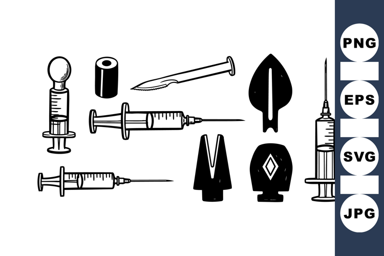 Black White Medical Healthcare Svg Set Medical Syringe Vector Vintage Medical Tools Doctor Needle Clipart Clinic Tool Collection Retro Health Bundle Injection Syringe Kit Therapy Equipment Svg Sharp Medical Instrument