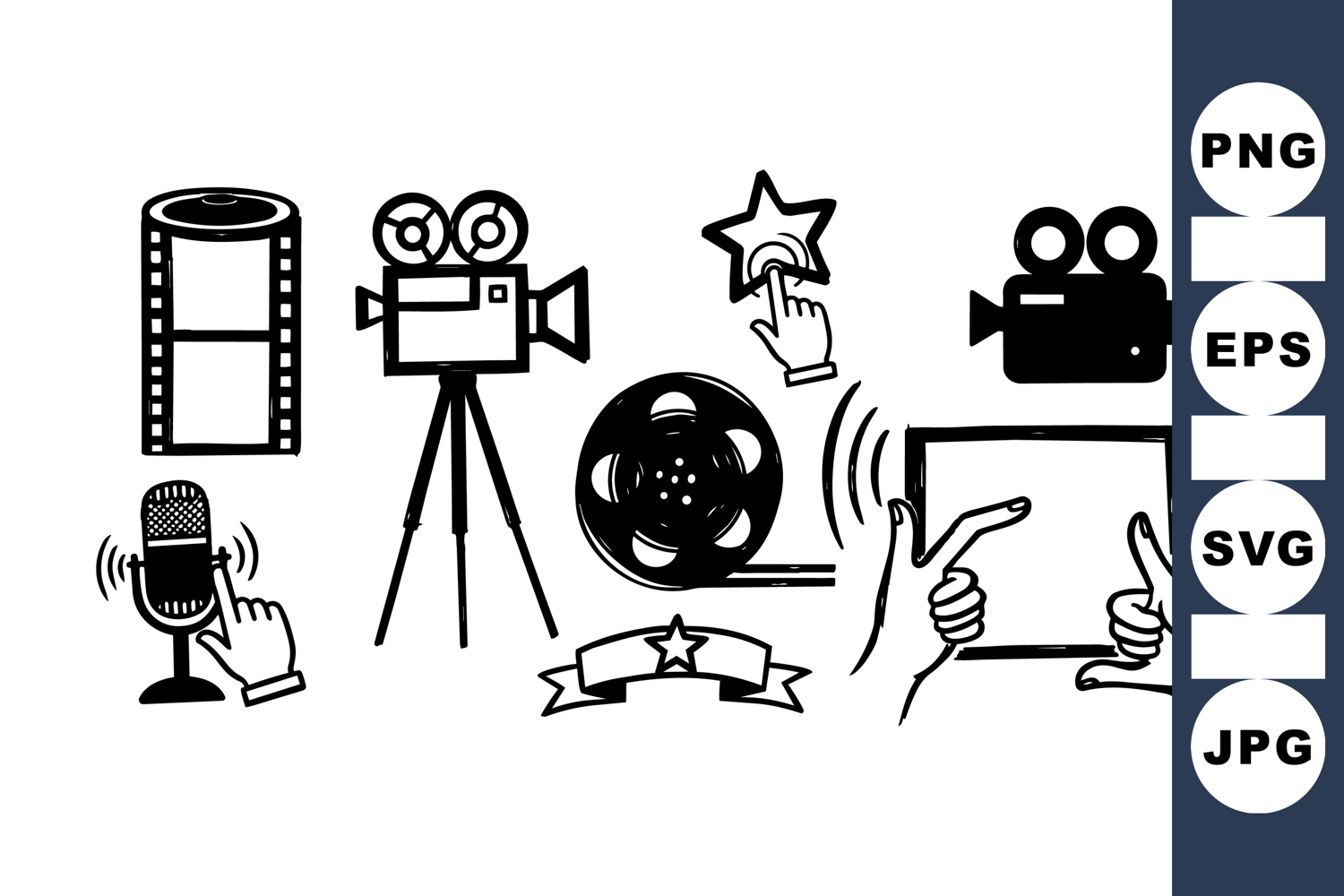 Hand Drawn Clipart Movie Production Set Vintage Movie Icons Film Camera Bundle Retro Cinema Icons Movie Recording Gear Film Strip Illustration Movie Director Tools Video Studio Icons Movie Media Graphics