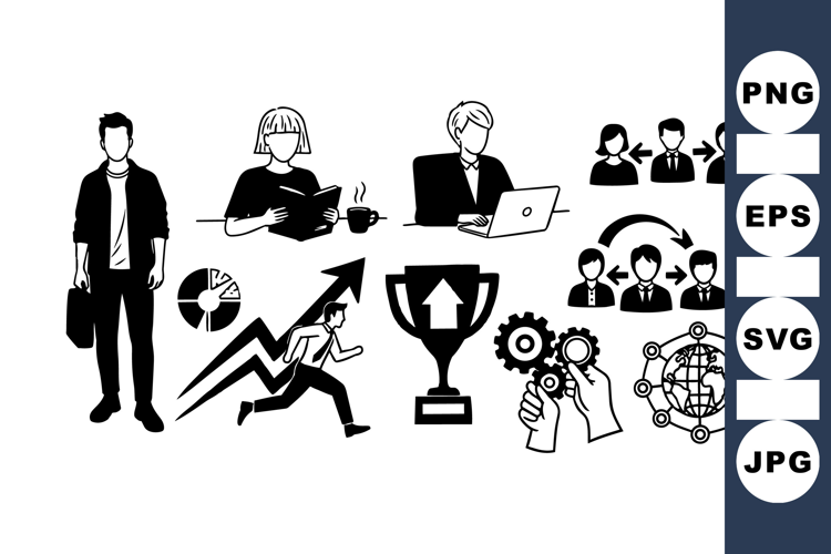 Business Icon Set Business Strategy Icons Goal Setting Vectors Corporate Team Icons Office Vector Bundle Achievement Trophy Vector Success Icon Pack Career Growth Icons Network Connection Graphics Professional Worker Illustrations