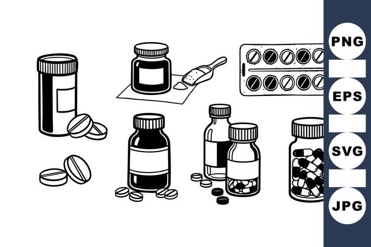 Medical Pill Bottles Clipart SVG Set for Healthcare