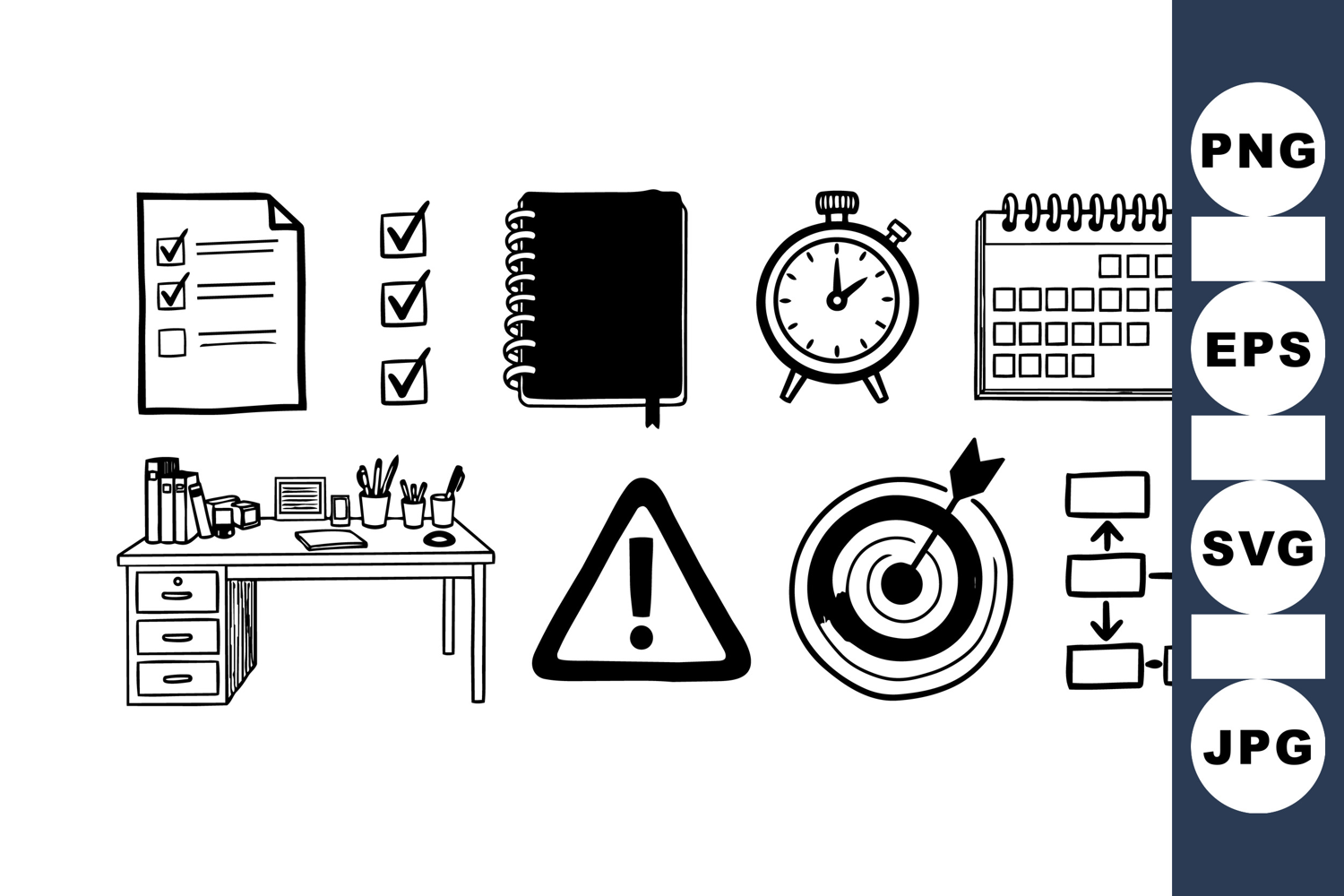 Productivity Icon Set Business Vector Pack Office Planning Icons Office Organization Graphics Project Planning Graphics Work Schedule Vectors Workflow Management Set Task Management Bundle Time Tracking Icons Goal Setting Pack