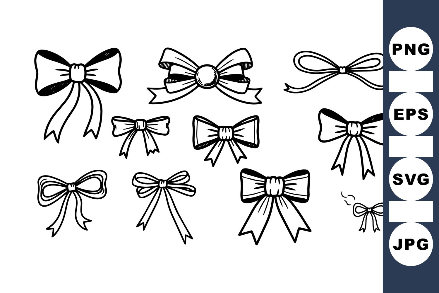 Gift Wrap Clipart Ribbon Bow Bundle Hand Drawn Ribbon Black And White Bow Vector Bow Clipart Ribbon Decoration Set Outline Bow Vector Decorative Bow Design Craft Bow Illustration Minimalist Ribbon Bow