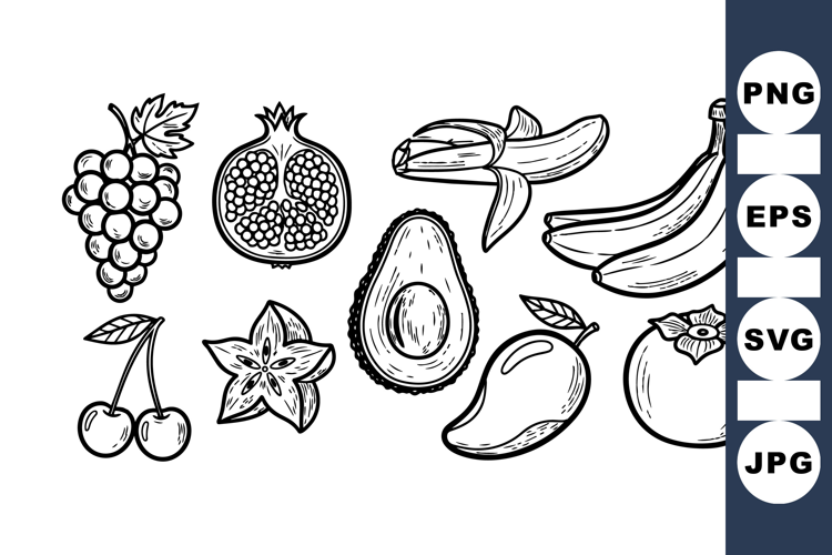 Tropical Fruit Clipart Vintage Fruit Illustrations Black And White Fruit Tropical Summer Bundle Hand Drawn Fruit Set Fruit Vector Collection Organic Fruit Bundle Exotic Fruit Graphics Outline Fruit Clipart Natural Food Designs