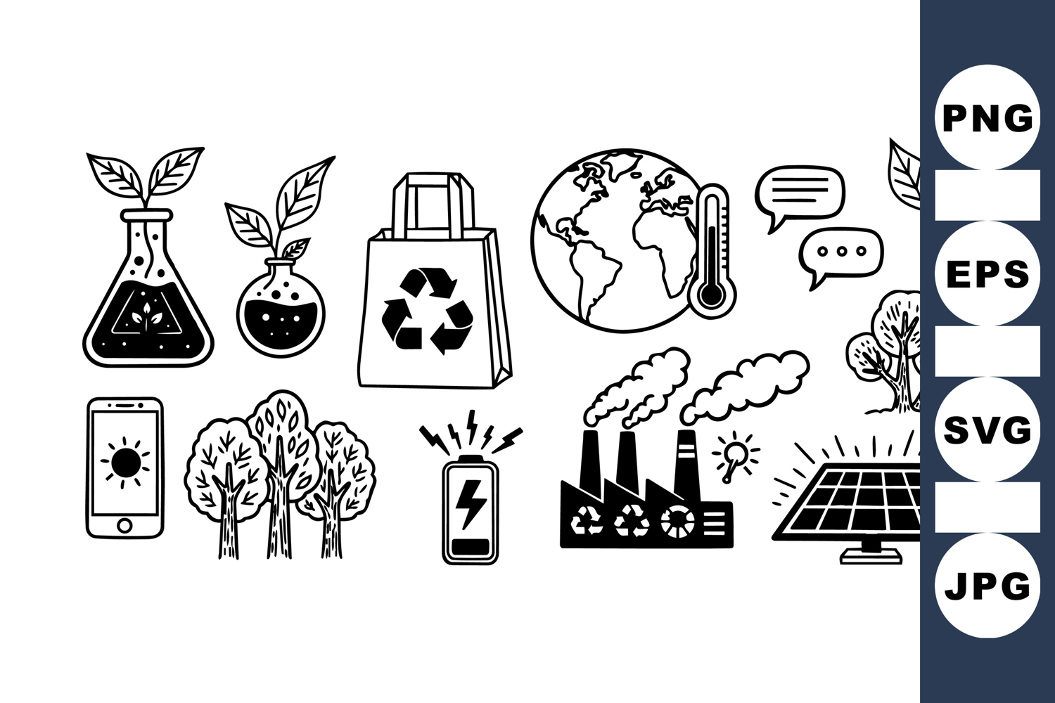 Renewable Energy Icons Climate Change Icons Eco Friendly Illustrations Recycling Symbol Set Nature Conservation Clipart Solar Power Graphics Environmental Science Clipart Green Technology Artwork Battery Energy Vector Forest And Tree Designs
